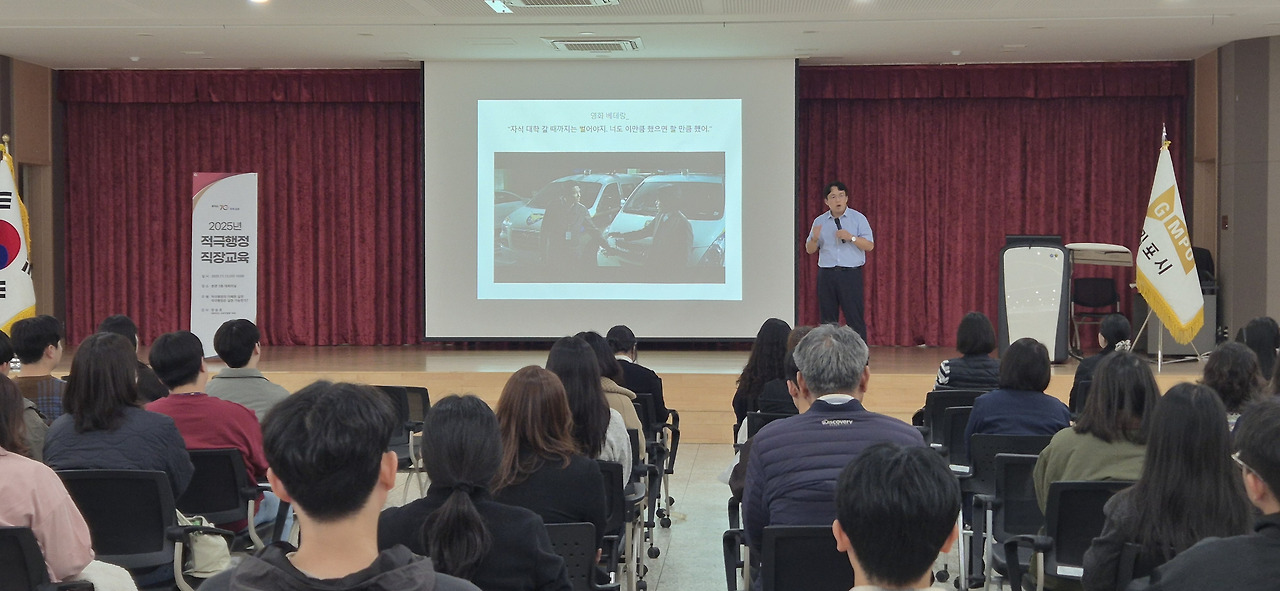 이번 교육은 공직자의 적극행정 역량을 강화하고, 시민이 체감할 수 있는 창의적이고 책임 있는 행정을 구현하기 위해 마련됐으며, 강의는 정승호(재미있는 교육컨설팅 대표) 적극행정 전문강사가 맡아 ‘적극행정은 실현 가능한가?’를 주제로 실제 사례 중심의 강연을 진행했다.