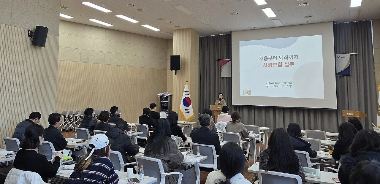 주요 교육 내용으로는 ▲사회보험의 기본적인 이해 ▲각종 자격취득 및 상실 신고 실무 ▲2025년 시행된 모성보호 3법▲외국인 근로자 채용 절차 및 고용허가제 등으로, 실무자가 알아야 할 인사·노무관리의 핵심 내용을 다양한 사례로 알기 쉽게 구성했다.