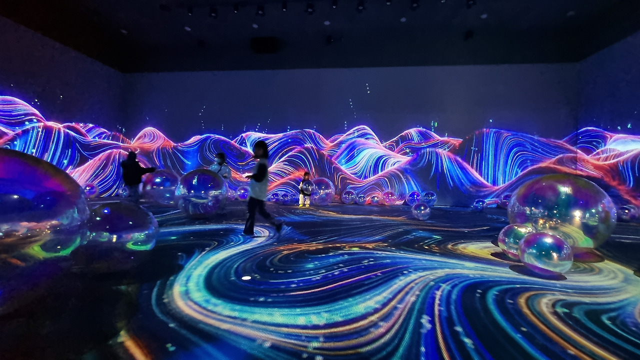 네 개의 포구는 전시를 통해 각각 고유의 빛과 감각으로 재탄생했다. 민물과 바다가 만나 만물이 조화를 이루던 전류리 포구는 찬란한 생명의 그래픽으로, 거센 물살과 파도 앞에서 자연의 겸손을 상기시키는 조강 포구는 깊고 푸른 빛으로 구현돼 눈길을 끌었다. 활발한 무역과 풍요의 시간을 품었던 강령 포구는 생동하는 디지털의 물결로, 침략과 전쟁의 아픔을 겪은 갑곶나루는 강렬한 붉은 색채의 추상 그래픽으로 재해석됐다.