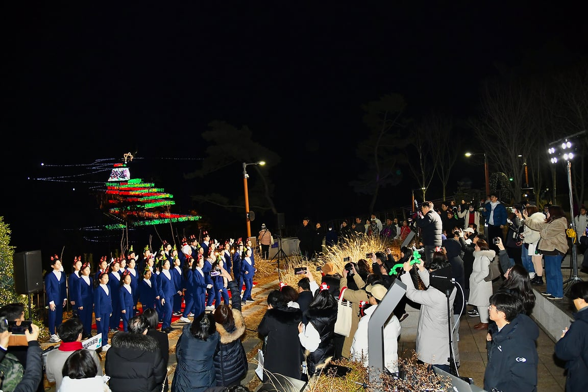 이날 행사는 애기봉의 역사이자 상징이었던 클래식한 트리의 정석을 모티브로 한 ‘애기봉 희망의 트리’ 제막으로 막을 열었다. 이어 주제공원 생태탐방로에서 길게 뻗은 산책로에 빛을 쏘아 만든 ‘트리 로드’가 점등되자, 빛 속을 걷는 듯한 몽환적인 분위기가 연출됐다.